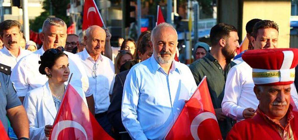 Çiftlikköy’de 15 Temmuz Demokrasi ve Milli Birlik Günü’nün 6.yıldönümü dolayısıyla 23 Nisan Meydanı’nda mehteran gösterisi ile başlayan etkinliklere Çiftlikköy Kaymakamı Ömer Bilgin, Garnizon Komutan Vekili Mustafa Lekesizgöz ve Çiftlikköy Belediye Başkanı Ali Murat Silpagar’ın yanı sıra ilçe protokolü, gazi ve şehit aileleri, belediye meclis üyeleri ve il genel meclisi üyeleri, belediye birim müdürleri ve belediye çalışanları, AK Parti İlçe Yönetimi, Kadın ve Gençlik Kolları ve Çiftlikköylüler yoğun katılım gösterdi.