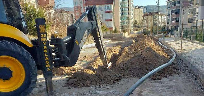 İçme suyu hattını basınca dayanıklı ve uzun ömürlü polietilen borularla değiştiren belediye ekipleri çalışmalarını kısa sürede tamamlamayı hedefliyor.