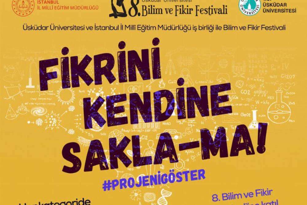 Üsküdar Üniversitesi 8. Bilim ve Fikir Festivaline bu yıl Sağlık Bilimleri, Sosyal Bilimler, Fen ve Teknoloji olmak üzere üç kategoride başvuru kabul edilecek. Bu yıl, “Fikrini Kendine Sakla-Ma” mottosuyla düzenlenen