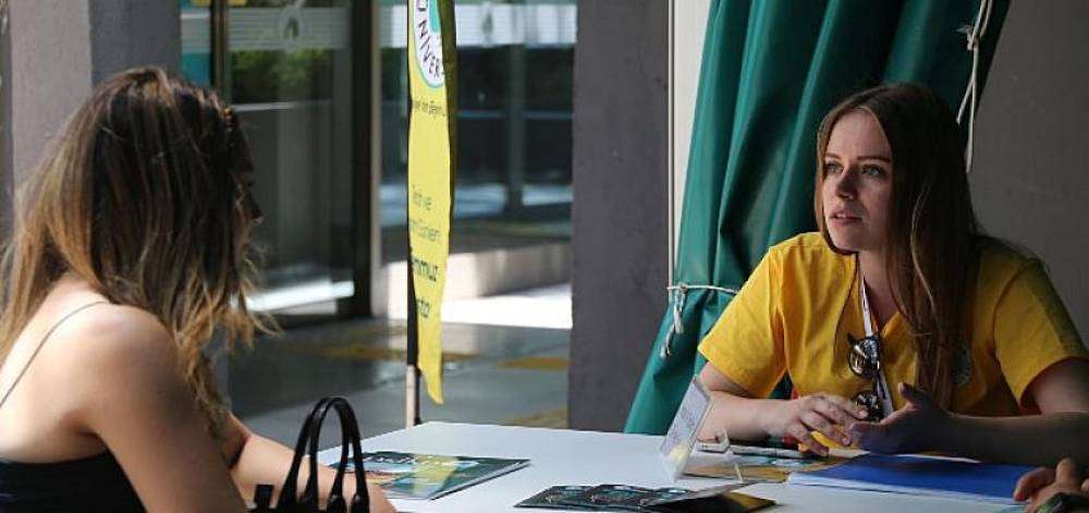 Üsküdar Üniversitesini ziyaret eden adaylara, bu yıl da üniversitenin öğrencileri karşılıyor. Nam-ı diğer “Sarı tişörtlü”ler, üniversitenin bölümlerini adaylara gezdirerek merak ettikleri her konuda kendilerini bilgilendiriyor.