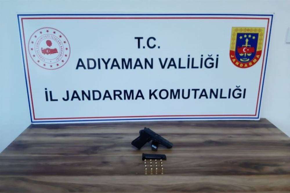 Adıyaman İl Jandarma Komutanlığı Merkez İlçe Jandarma Komutanlığı ekipleri Altınşehir mahallesinde 16 Eylül 2022 günü gece 01.30'da icra edilen önleyici kolluk faaliyeti esnasında şüphelenilen araç içerisinde bulunan bir kişinin üzerinde yapılan kontroller neticesinde 1 adet ruhsatsız tabanca, 2 adet şarjör ve 16 adet fişek ele geçirildi.