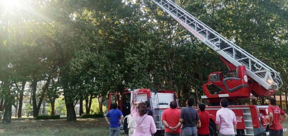 Büyükşehir İtfaiye ekipleri Gebze Teknik Üniversitesi öğrencilerinin insansız hava aracını (İHA) takılı kaldığı ağaçtan alarak öğrencilere teslim etti