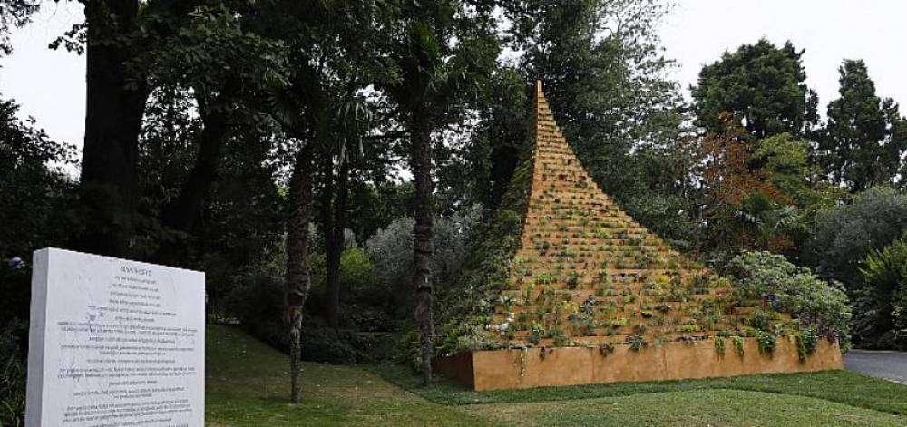 İlk olarak 2015 yılında New York’taki Socrates Heykel Parkı’nda ve ardından 2017’de documenta 14 kapsamında Kassel’deki Nordstadtpark’ta inşa edilen, mekâna özgü bir eser olan “Yaşayan Piramit,” doğal yaşam döngüsüne sahip bir heykel olarak da değerlendirilebilir. Dört ton toprakla doldurulmuş ahşap basamaklı teraslardan oluşan piramit, gökyüzüne uzanan dokuz metrelik bir kavis çiziyor. Piramidin teraslarında, her bir cephesine düşen güneş ve gölge miktarına göre belirlenerek İstanbul’un kent florası içinden sanatçının seçtiği, yaklaşık altı yüz türde iki bin adet bitki ve çiçek var. Piramit bahçede sergilendiği sürece evrim geçirecek; bitkiler filizlenecek, çiçek açacak, bazıları tohuma kaçacak, bazıları ölecek.