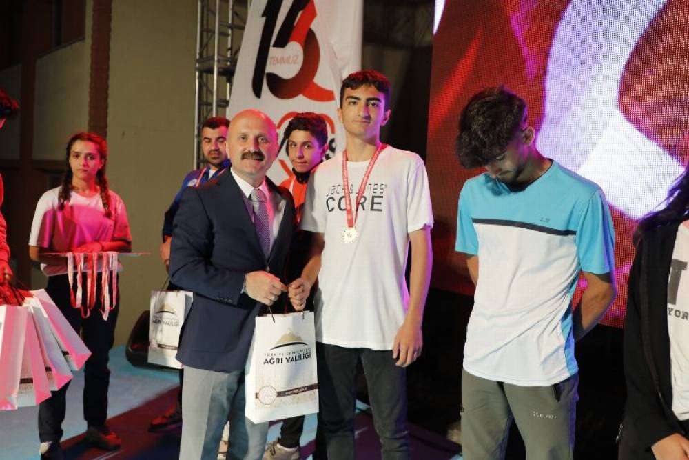 Vali Dr. Osman Varol’un konuşmaları sonrasında programımız, 15 Temmuz Demokrasi Zaferi ve Şehitlerini Anma Koşusu, badminton, halter ve tenis müsabakalarında dereceye giren sporcularımıza ödüllerini takdim edilmesi ile devam etti.