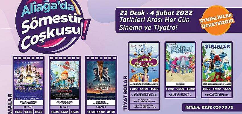Aliağa Belediyesi, yarıyıl tatiline girecek öğrencilere karne hediyesi olarak birbirinden eğlenceli sinema ve tiyatro gösterimleri hazırladı. Ücretsiz olarak gerçekleştirilecek sinema ve tiyatro gösterimlerinin yanı sıra çeşitli oyun aktiviteleri yüzlerce çocuğa sömestir coşkusu yaşatacak.