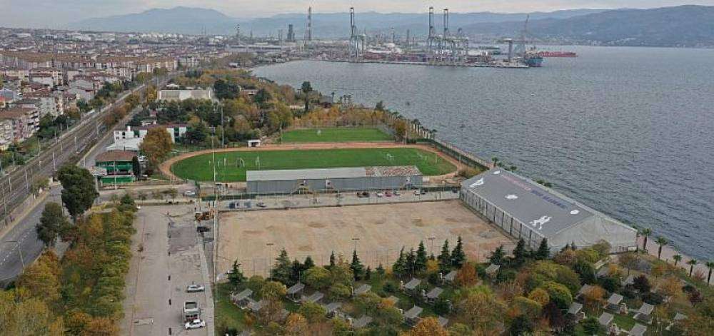 Körfez Alparslan Türkeş Spor Kompleksi içerisinde bulunan 5 bin 930 m²'lik alandaki çim, Büyükşehir ekipleri tarafından çalışmaların ilk kısmında kaldırılmıştı. Sahanın yeni sentetik çim halısının üretimi fabrika ortamında gerçekleştiriliyor.