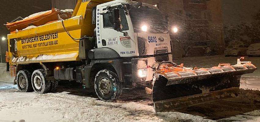 Haftanın ilk iş gününde vatandaşların ve sürücülerin sorun yaşamaması için ana arterleri açık tutan Büyükşehir Belediyesi personel ve araç sayısını artırdı.