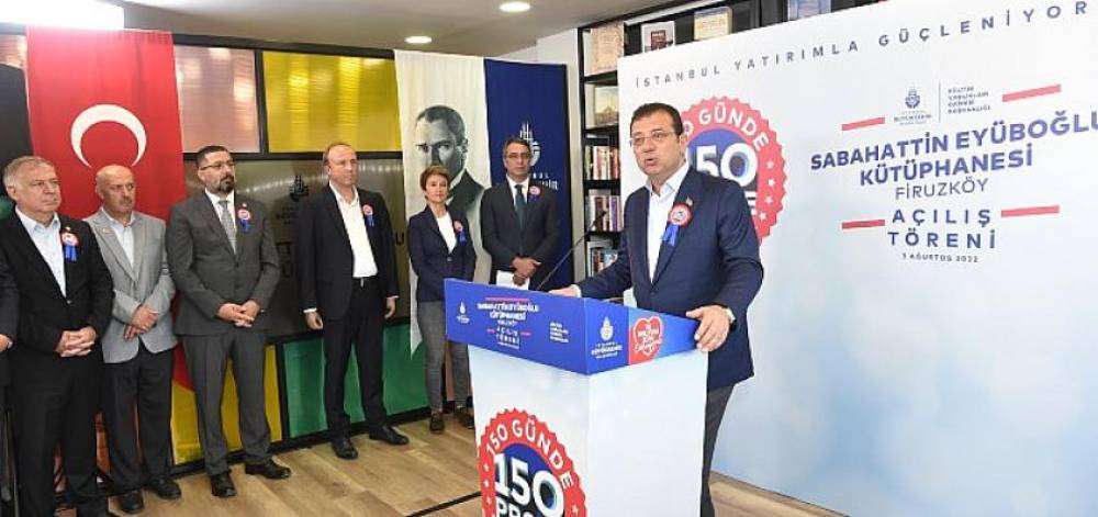 “150 Günde 150 Proje” maratonu kapsamında; Avcılar Firuzköy’de “Sabahattin Eyüboğlu Kütüphanesi”nin, açılış töreninde yaptığı konuşmada “Bu tür hizmetleri sunuyor olmanın büyük bir gururunu yaşıyorum” diyen İstanbul Büyükşehir Belediye (İBB) Başkanı Ekrem İmamoğlu, “Yaptığımız işlerle, açılışlar yaparak hizmet kervanında vites yükseltiyoruz diyebilirim. Yaptığımız bu atılımların, adımların çok kalıcı, gerçekçi, ihtiyaca dokunan ve özellikle ifade edeyim ki, ilçe belediye başkanlarımızın da katkılarıyla, İstanbul'da büyük bir değişimi var eden bir süreci yürütüyoruz” ifadelerini kullandı.