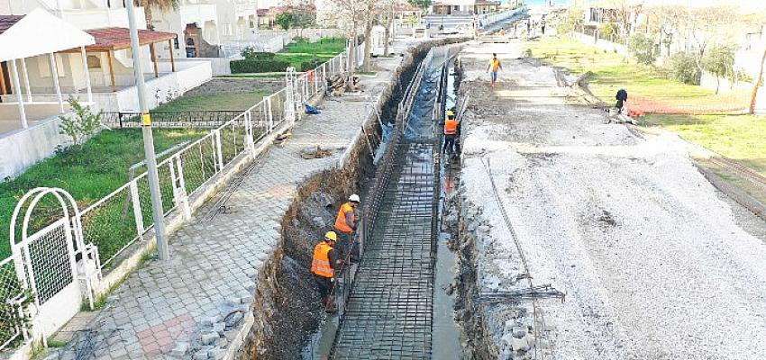 Sevgi plajı tarafında temelleri atılan ve Güzelçamlı Mahallesi’ne doğru devam eden çalışma kapsamında 1810 m menfez, 6766 m kanal ve 1285 m boru hattı inşa edilecek. Etkin bir çalışma yürütülen projede, beton boru ve ızgaralı kanalların oluşturacağı hat; aşırı yağışlarda oluşabilecek olumsuzlukların önüne geçecek ve yağmur suları sorunsuz bir şekilde denize deşarj edilecek. Çalışma yapılan alanda üstyapı işlerinin de bitmesiyle birlikte projesinin yaz sezonu öncesinde tamamlanması hedefleniyor.