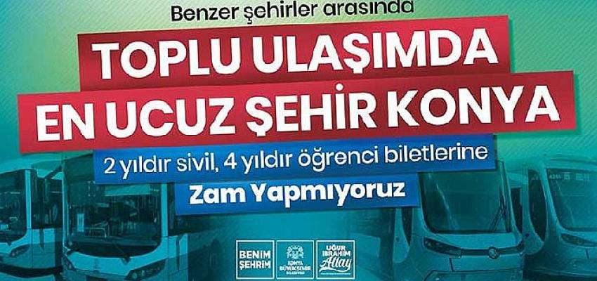 Konya Büyükşehir Belediye Başkanı Uğur İbrahim Altay, Türkiye’nin en büyük şehirlerine oranla en ucuz ulaşım hizmetini sağladıklarını belirterek, Konya Büyükşehir Belediyesi’ne ait toplu ulaşım araçlarında 2022 yılında da zam yapmayacaklarını duyurdu.