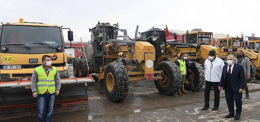 Büyükşehir Belediyesi Fen İşleri Daire Başkanlığı, Kırsal Hizmetler Daire Başkanlığı ve Park Bahçeler ve Ağaçlandırma Daire Başkanlığı karla mücadele ekipleri, merkez ve 16 ilçe olmak üzere 7 noktada olası kar yağışına karşı 24 saat çalışması esasına göre gece, gündüz demeden görev yapıyor.