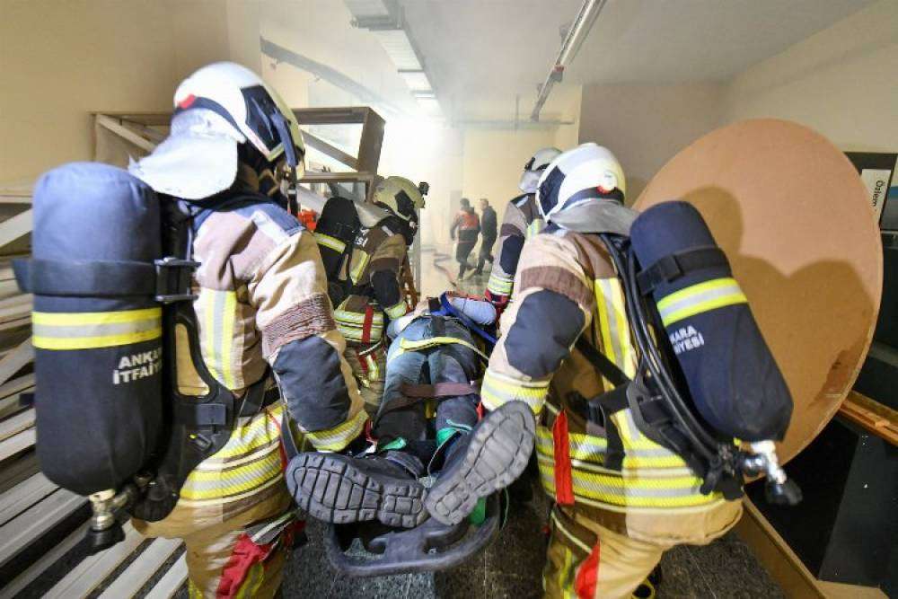 ANKARA (İGFA) - Sağlık İşleri Daire Başkanlığı, Deprem Risk Yönetimi ve Kentsel İyileştirme Daire Başkanlığı ile Ankara İtfaiyesi, 12 Kasım Düzce Depremi’nin 23’üncü yıl dönümünde deprem tatbikatı düzenledi. Büyükşehir Belediyesinin Ragıp Tüzün Caddesi’ndeki BELMEK ve İş Sağlığı Güvenliği binasında düzenlenen tatbikatta vatandaşlara deprem anında yapılması gerekenler anlatılırken, depoda mahsur kalan bir vatandaş itfaiye erleri tarafından kurtarıldı.