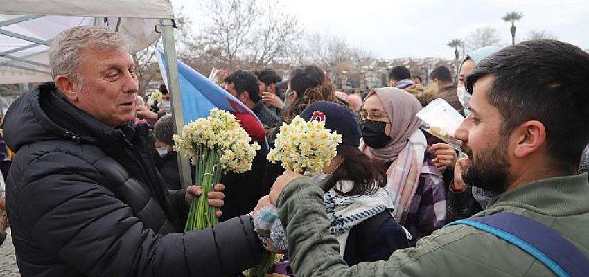 Bayındır Belediyesi 6 Şubat günü Turan Mahallesinde yapılacak Nergis ve Kuru Çiçek Festivali’nin tanıtımını yapmak amacıyla Konak Meydanı'nda ve Karşıyaka İskelesi’nde İzmirlilere nergis ve kuru çiçek hediye etti.