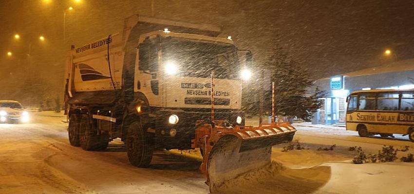 Nevşehir’de akşam saatlerinde başlayan kar yağışı aralıklarla etkisini sürdürüyor. Kar yağışı ile birlikte harekete geçen Nevşehir Belediyesi Karla Mücadele Ekipleri, başta ana arterler olmak üzere tüm mahallelerde ulaşımın aksamaması için yoğun bir çaba sarf ediyor.