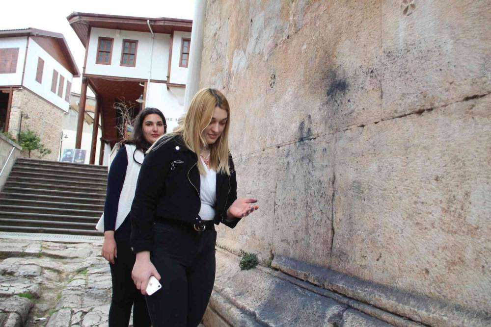 Siyah boyayı gören birçok kişinin kendisini arayarak şikayetçi olduğunu dile getiren Ay, “Çok kötü bir görüntü. Sanırım toz boya, almak istedik ama taşların içine işlemiş. Çok çirkin bir görüntü. Bu kadar güzel bir yapıtı böyle bozmak çok basit bir şey. Bu yapılan tarihimize hakaret ihanetti. Burası bizim tarihimiz, gözbebeğimiz. Temiz tutup iyi bakmamız lazım. Kendimize nasıl bakıyorsak bu eserlere de öyle bakmalıyız. Yetkililerin buraya kamera takması, bunu yapanları bulup cezalandırılması gerektiğini düşünüyorum” dedi.
