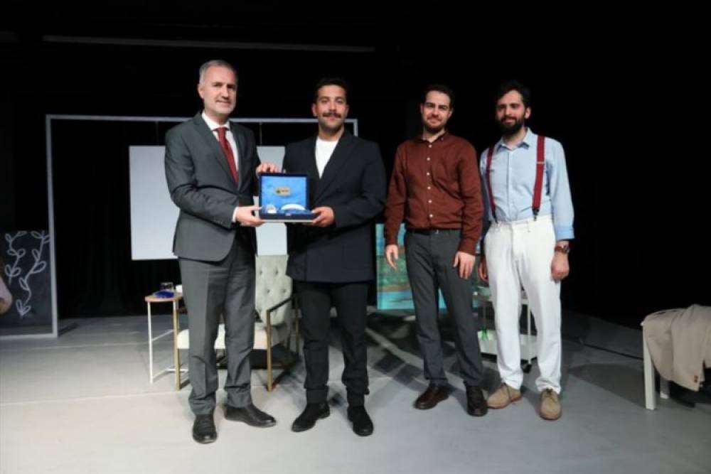 Oyun sonunda gösteriyi izleyen Belediye Başkanı Alper Taban da sahneye davet edildi. Burada kısa bir selamlama konuşması yapan Başkan Taban, “Programa katılan herkese çok teşekkür ediyorum. Oyunu beğendiğinizi umuyorum. Güzel bir akşam oldu. Biz de çok kıymetli meclis üyelerimizle, kıymetli yöneticilerimizle soluksuz izledik diyebilirim. Düşündük, güldük, işin içine mizahta girdi, duygulandık. Kültür sanat anlamında çalışma arkadaşlarımız güzel işler icra ediyorlar. Bizleri böylesine güzel etkinliklerle buluşturuyorlar. Ben kıymetli oyuncularımızı da şehrimizde ağırlamaktan büyük mutluluk duyduğumu ifade etmek istiyorum” ifadelerinde bulundu. Alper Taban, konuşmasının ardından oyunculara gecenin anısına hediye takdimi gerçekleştirdi.
