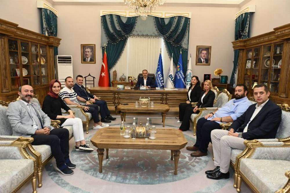 BURSA (İGFA) - Temsilciliğini Uludağ Elektrik Kurumsal İletişim Direktörü Yusuf Ziya Yüce’nin yürüttüğü çalışma grubu Büyükşehir Belediye Başkanı Alinur Aktaş’ı ziyaret etti. Tarihi binada gerçekleştirilen ziyarete Yüce’nin yanı sıra LÖSEV Bursa Koordinatör Yardımcısı Aslı Metin Sakarya, Sönmez Medya Haber Müdürü Sevda Kurul, BUSKİ Basın Sorumlusu Murat Eyüp, Anadolu Ajansı Bursa Bölge Müdürü Erdinç Aksoy, Uludağ Elektrik Kurumsal İletişim Uzmanı Aygül Kumova, Bursa Kent Konseyi Genel Sekreteri Murat Başlar ile TSYD Bursa Şube Başkanı Mehmet Ali Ekmekçi katılım gösterdi.
