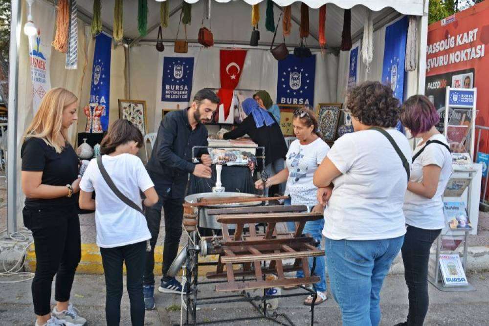 Bursa ipeğinin kültürel tanıtımının yapıldığı stantta, BUSMEK’in ücretsiz eğitim faaliyetleri hakkında da katılımcılara bilgiler verildi. İpek halı dokuma ve ipek kozalarından ipek çekimi uygulamaları, ziyaretçiler tarafından ilgiyle izlendi. Ayrıca. ‘ebru’ ve ‘filografi’ sanatlarından oluşan tablolar, çini, deri ve ipek ürünler stantta sergilendi.