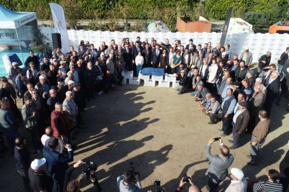 BALIKESİR (İGFA) - Ayvalık, Gömeç, Burhaniye, Edremit, Havran, Marmara, Erdek, Bandırma, Manyas, Gönen, Sındırgı, Savaştepe, Bigadiç ve İvrindi ilçeleri olmak üzere toplamda 14 ilçesinde zeytin üretimi yapılan Balıkesir’de, Çiftçi Kayıt Sistemi’ne (ÇKS) kayıtlı olan tüm üreticilere,kura ile Büyükşehir Belediyesi tarafından destekler verilmeye devam ediyor. Etaplar halinde gerçekleşen dağıtımlar kapsamında Körfez Bölgesi’nde yer alan; Burhaniye, Havran, Gömeç, Edremit ve Ayvalık ilçelerinde üretim yapan zeytincilere,Büyükşehir Belediyesi’ne bağlı olarak Burhaniye’de faaliyet gösteren Balıkesir Çiftçi Eğitim Merkezi’nde (BAÇEM) Büyükşehir Belediye Başkanı Yücel Yılmaz’ın katılımıyla zeytin toplama örtüsü ve zeytin toplama kasası dağıtım töreni yapıldı.
