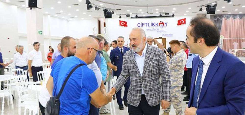 Çiftlikköy’de Kurban Bayramı dolayısıyla bayramlaşma töreni Çiftlikköy Belediyesi Düğün ve Konferans Salonu’nda yapıldı.