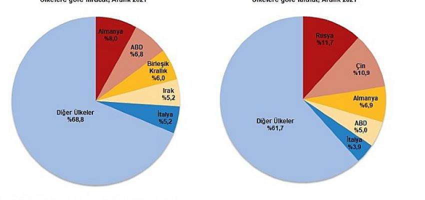 İhracat, ithalat ve dış ticaret dengesi, Aralık 2021