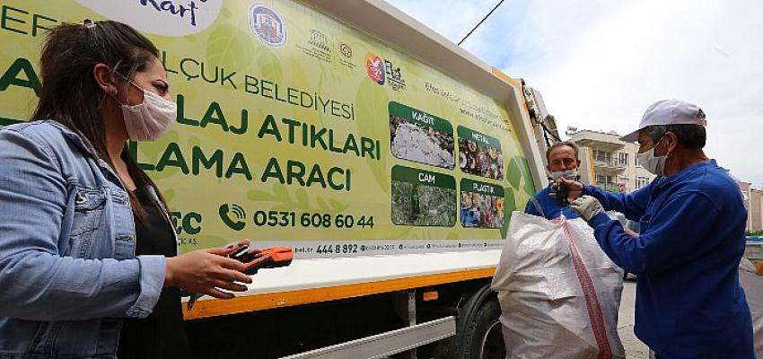 Dar gelirliye destek, esnafa can suyu, eğitime katkı ve çevreye dost işlevleri ile kente, kentliye sosyal ve ekonomik destek sunan Efeslim Kart’ı atık toplamak için kullanan Efes Selçuklular, artık biriktirdikleri geri dönüştürülebilir ambalaj atıklarından (kağıt, karton, cam, metal, plastik) iki kat daha fazla puan elde edebilecek. Biriken puanlarla eğitime katkı sunulabildiği gibi yerel esnaftan da alışveriş yapılabilecek.