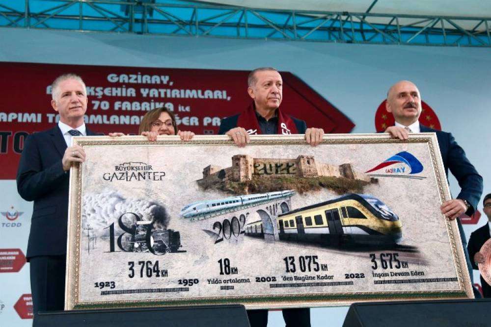Cumhurbaşkanı Recep Tayyip Erdoğan, Ulaştırma ve Altyapı Bakanı Adil Karaismailoğlu ile Gaziantep Büyükşehir Belediye Başkanı Fatma Şahin, hizmete hazır hale getirilen GAZİRAY ile Beylerbeyi durağından Gaziantep Gar istasyonuna gelerek senfoni orkestrasının seslendirdiği bestesi Yücel Arzen’e ait “Türkiye Yüzyılı” parçasını dinledi.