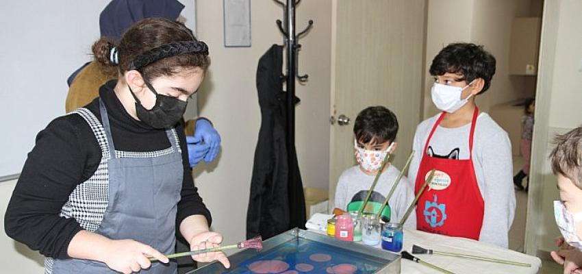 Büyükşehir, ‘Sanat ve Eğlence Atölyeleri’ adı altında düzenlenen etkinliklerde unutulmaya yüz tutmuş ebru sanatını gelecek nesillere aktarıyor