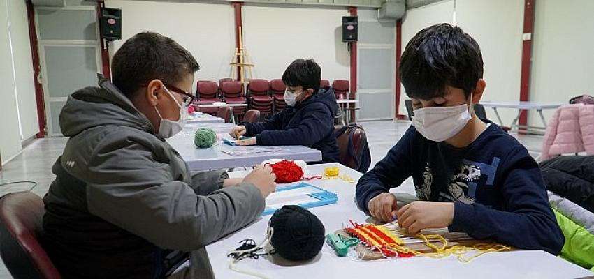 Atölyeye katılan öğrenciler, öğrendikleri bilgileri mini dokuma tezgahlarında telefon kılıfı ve el çantası dokudular. El becerilerini mini dokuma tezgahlarında ilmek ilmek işleyen öğrenciler, rengarenk ürünler ortaya çıkardılar.