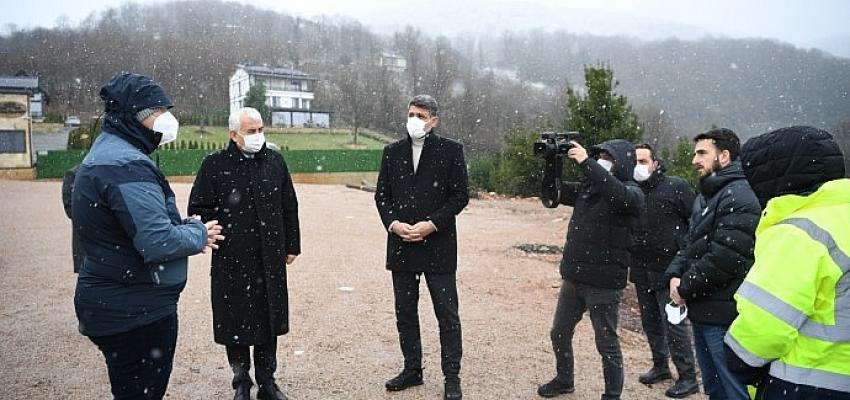 Büyükşehir Genel Sekreteri Gündoğdu ile Başkan Kocaman, Kartepe’de yapılacak teleferik projesinin başlangıç noktasında incelemelerde bulundu.