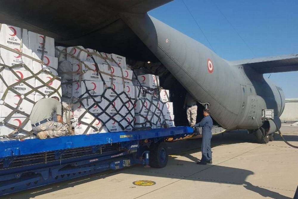Cumhurbaşkanı Recep Tayyip Erdoğan'ın talimatıyla hava köprüsü kurulan bölgeye, ilk etapta 10 bin adet çadır, 50 bin gıda kolisi, hijyen ve bebek malzemesinden oluşan yardım gönderiliyor.