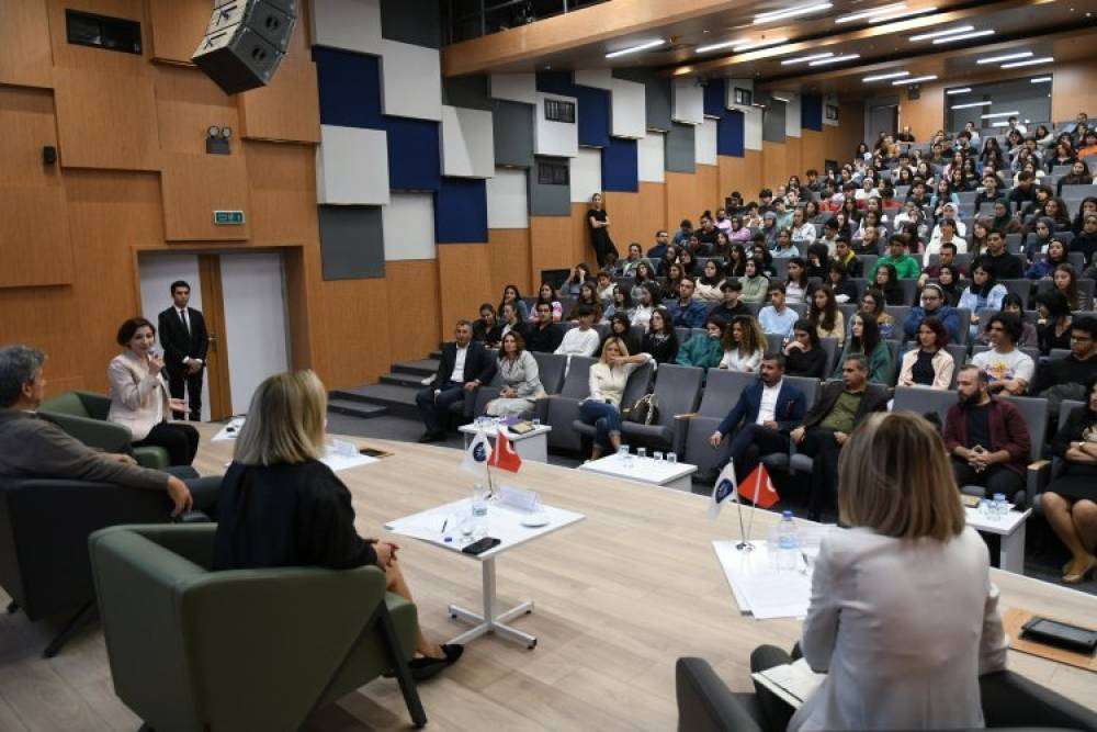 KARBEM Rehber Öğretmeni Müge Şeref'in yönettiği ilk oturumda, İzmir Ekonomi Üniversitesi Meslek Yüksekokulu Müdürü Öğretim Görevlisi Burçin Önder, İzmir Yüksek Teknoloji Enstitüsü Makine Mühendisliği Bölüm Başkanı Doç Dr Ünver Özkol ve İzmir Demokrasi Üniversitesi Peyzaj Mimarlığı Öğretim Üyesi Doç Dr Birsen Kesgin Atak konuşmacı olarak yer aldı.