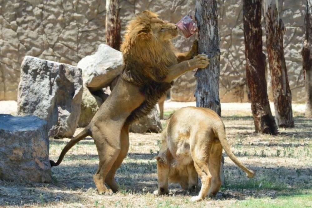 Sıcak hava nedeniyle iştahları kapanan hayvanların beslenmesine yardımcı olmak için beslenme alışkanlıklarına göre hazırlanan yiyecekler, buz kalıplarının içerisinde donduruldu. Bu “serin menüyü” iştahla yiyen park sakinleri, hem serinledi hem de karınlarını doyurdu. Zaman zaman 40 dereceyi bulan sıcaklardan korunabilmek için barınaklarındaki gölge alanları tercih eden park sakinleri, her fırsatta suya girerek serinlemeye çalışıyor.