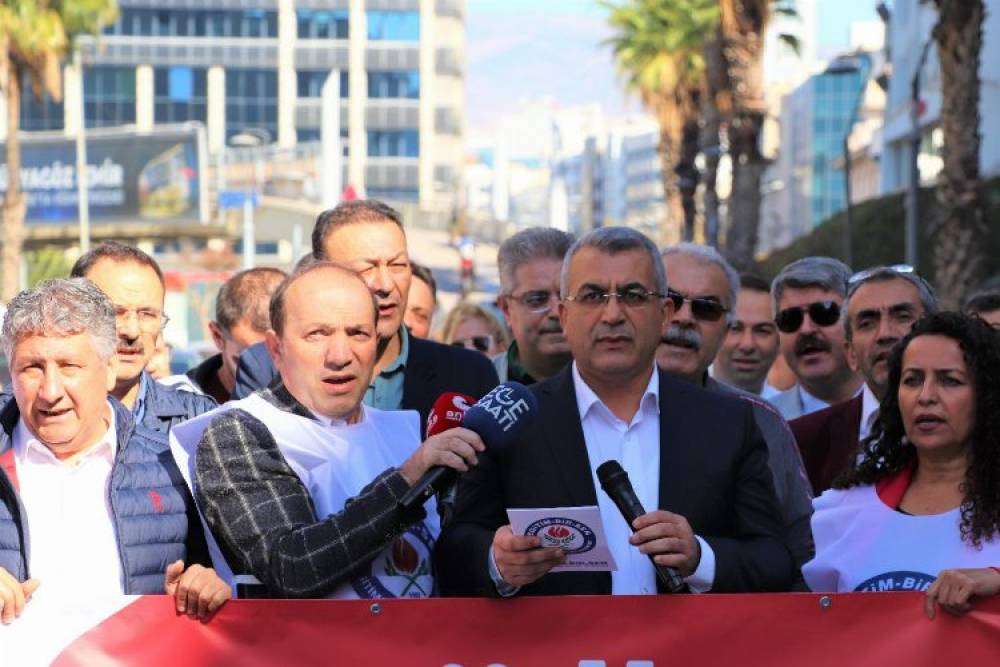 Eğitim-Bir-Sen İzmir 1 Nolu Şube Öğretmenlik Meslek Kanununda değişiklik yapılması taleplerine duyarsız kalınmasına karşı basın açıklaması düzenledi.