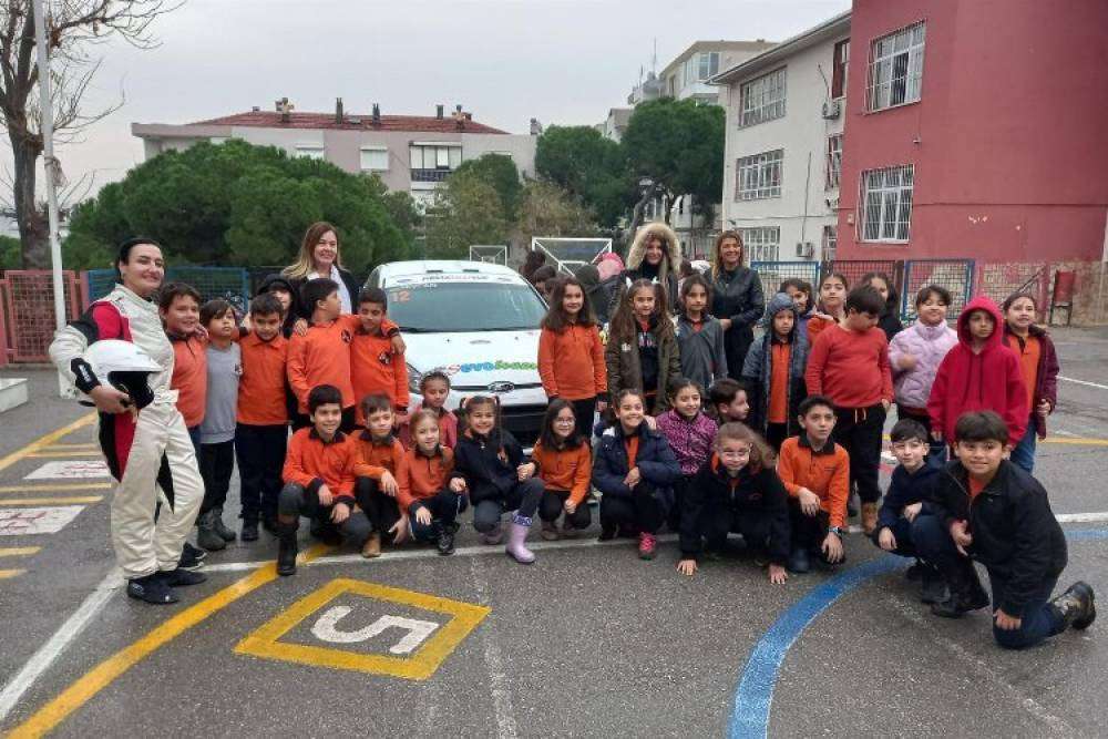 İzmir'de rallicilerden öğrencilere trafik eğitimi