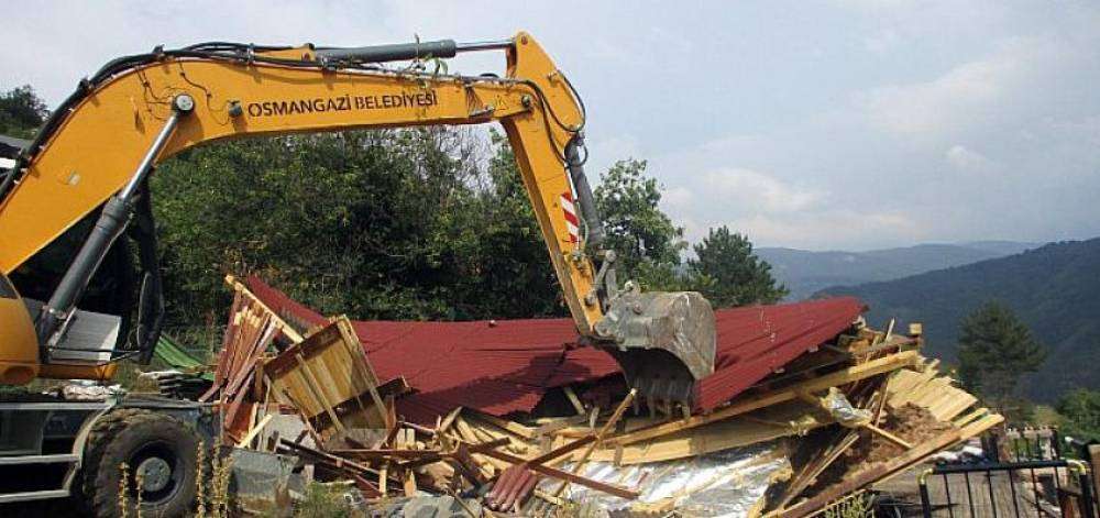 Kaçak yapılaşmaya karşı kararlı bir mücadele veren Osmangazi Belediyesi, Uludağ yamaçlarında yer alan Kirazlı mahallesinde kaçak olarak inşa edildiği belirlenen 5 ruhsatsız yapıyı yıktı.