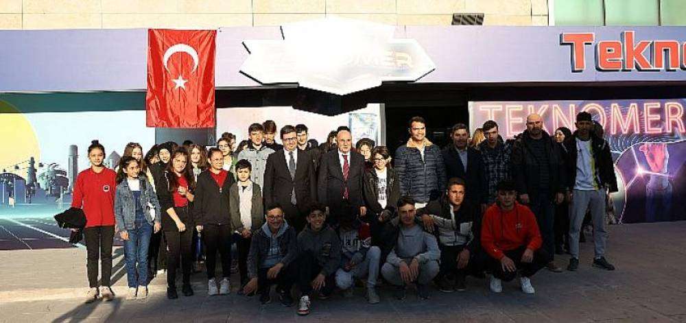 Keçiören Belediyesi TEKNOMER Ankara Kalecik’ten gelen 70 öğrenciyi misafir ederek onlara teknolojiyle dolu bir gün yaşattı. Keçiören Belediye Başkanı Turgut Altınok ve Kalecik Belediye Başkanı Duhan Kalkan’ın da katıldığı gezide öğrencilere TEKNOMER’de gerçekleştirilen faaliyetler ve eğitimler hakkında bilgiler verildi.   Keçiören Belediye Başkanı Turgut Altınok Kalecik’ten gelen çocukları Keçiören’de ağırlamaktan büyük mutluluk duyduklarını belirterek, “Cumhuriyetimizin ilk kalesi Estergon Kalesi Keçiören’dedir. Gençlerimiz için Deniz Dünyası, Doğal Yaşam Parkı, teleferik, aqua parklar, buz pateni pisti gibi onlarca tesis yaptık. Aynı zamanda voleybol sahası, tenis kortu, basketbol sahası ve halı sahalarımız ücretsiz hizmet veriyor. Keçiörenli çocuklar şanslı, Keçiören’de genç olmak güzel. Sizler de genç bir belediye başkanına sahipsiniz. Kalecik’in çehresini değiştiren önemli hizmetlere imza attı. Bu bakımdan çok şanslısınız.” dedi.   Kalecik Belediye Başkanı Duhan Kalkan da Keçiören Belediyesinin TEKNOMER gibi bir tesisi hizmete sokarak gençlere ulaşma konusunda başarıya ulaştığını belirterek, “Turgut Başkanımız Ankara’mızın en başarılı belediye başkanlarından biridir. Deneyimleriyle birçok eser ve hizmete imza atmıştır. Bugün de gençlerimiz için yapılan önemli bir yatırımı gezme şansı bulduk. Kendisine bu hizmetlerinden dolayı teşekkür ediyoruz.” ifadelerini kulladı.   TEKNOMER’i görme şansı bulan gençler ise burayı büyük beğeniyle karşılayarak özellikle sanal gözlük keyfini doyasıya yaşadılar. Öğrenciler daha sonra ilçedeki Deniz Dünyası, Doğal Yaşam Parkı ve Estergon Kalesi’ni gezdiler.