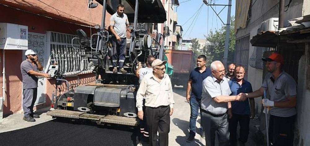 Karabağlar Belediye Başkanı Muhittin Selvitopu, Yunus Emre Mahallesi'nde yakıcı güneş altında ter döken emekçileri ziyaret ederek kolaylıklar diledi ve çalışmaları denetledi. Yunus Emre Mahalle Muhtarı Süleyman Can, Peker Mahalle Muhtarı Abdülbaki Işık, İhsan Alyanak Mahalle Muhtarı Abubekir Aras ve vatandaşlarla da sohbet eden Başkan Selvitopu, Karabağlar Belediyesi'nin tüm gücüyle sahada olduğunu vurguladı.