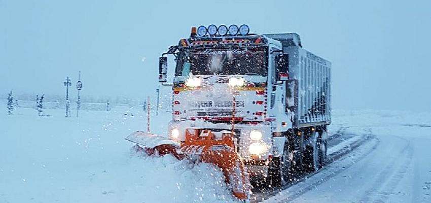 Nevşehir Belediyesi karla mücadele ekipleri gece saatlerinde başladığı kar temizleme ve tuzlama çalışmalarını aralıksız sürdürüyor.