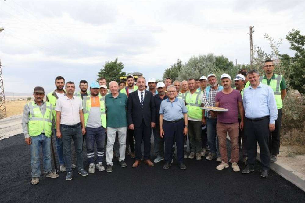 Kayseri Büyükşehir Belediye Başkanı Dr. Memduh Büyükkılıç, Tomarza ilçesinde 5 kilometrelik, 10 bin ton sıcak asfalt kullanılan asfaltlama çalışmalarının gerçekleştiği yolda incelemelerde bulunarak, işçilere tatlı ikram etti. Başkan Büyükkılıç, “Hizmetten hizmete koşuyoruz, ilçelerimizi ihya ediyoruz” dedi.