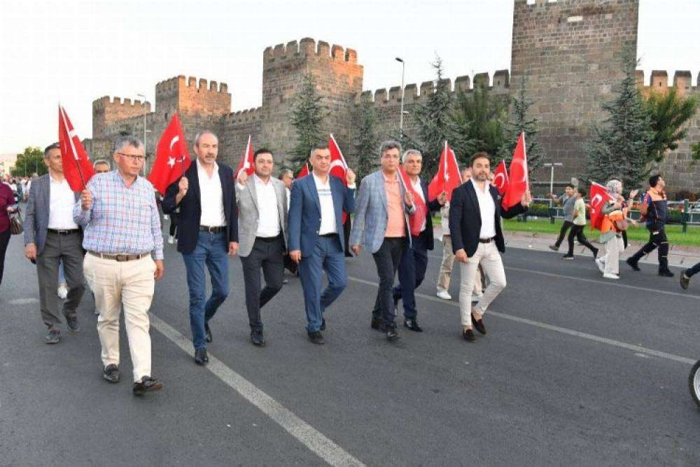15 Temmuz Demokrasi ve Milli Birlik Günü etkinlikleri kapsamında Kartal Şehitliği’nden Cumhuriyet Meydanı’na “Türkiye Aşkına Demokrasi Yürüyüşü” yapıldı. Yürüyüşe, Kayseri Organize Sanayi Bölgesi Yönetim Kurulu Başkanı Mehmet Yalçın da katıldı. Başkan Yalçın, Cumhuriyet Meydanı’na iş dünyası temsilcileri ile birlikte yürüdü. Kayseri Sanayi Odası Başkanı Mehmet Büyüksimitçi, Ticaret Odası Başkanı Ömer Gülsoy, Kayseri OSB Başkanı Mehmet Yalçın ve odaların yöneticileri ellerindeki Ay-Yıldızlı bayrağımızla milletimiz gibi iş dünyasının da birlik beraberliğini gösterdi.