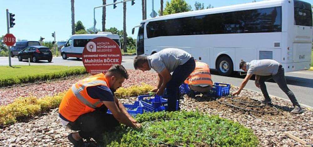 Antalya Büyükşehir Belediyesi, Kemer’de çalışmalarını aralıksız sürdürüyor. Büyükşehir Belediyesi Park ve Bahçeler Dairesi Başkanlığı ekipleri ilçenin rengarenk görünmesi için mevsimlik çiçek dikimi yapıyor. Çalışmalarına Atatürk ve Demokrasi Bulvarı'ndan başlayan ekipler, ilçenin girişini güzelleştiriyor.