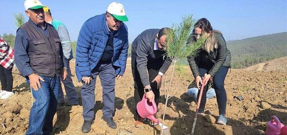 İzmir’in Kınık İlçesinde 11 Kasım Milli Ağaçlandırma Günü etkinlikleri kapsamında fidanlar toprakla buluşturuldu.