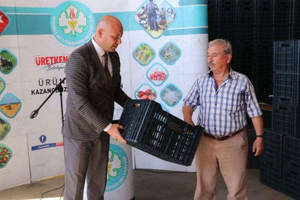 Manisa Büyükşehir Belediyesi, kırsalda bulunan üreticilerin gelirlerinin artması hayata geçirdiği proje kapsamında Sarıgöl ilçesinde 200 zeytin üreticisine 2 bin adet zeytin kasasını düzenlenen törenle dağıttı.
