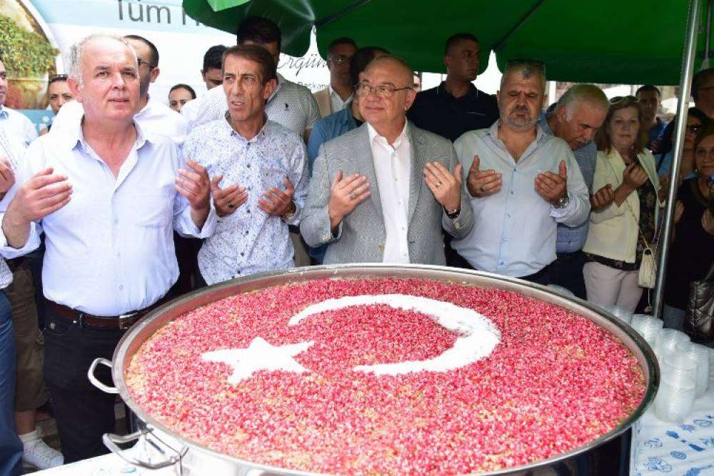 Manisa Büyükşehir Belediyesi’nin, Muharrem ayı vesileyle geleneksel hale getirdiği aşure günleri, Karaköy Pazaryerinde olunan dualarla başladı. Yaklaşık bin kişilik aşureyi kendi elleriyle vatandaşa dağıtan Manisa Büyükşehir Belediye Başkanı Cengiz Ergün, vatandaşların bol bol hayır dualarını aldı.