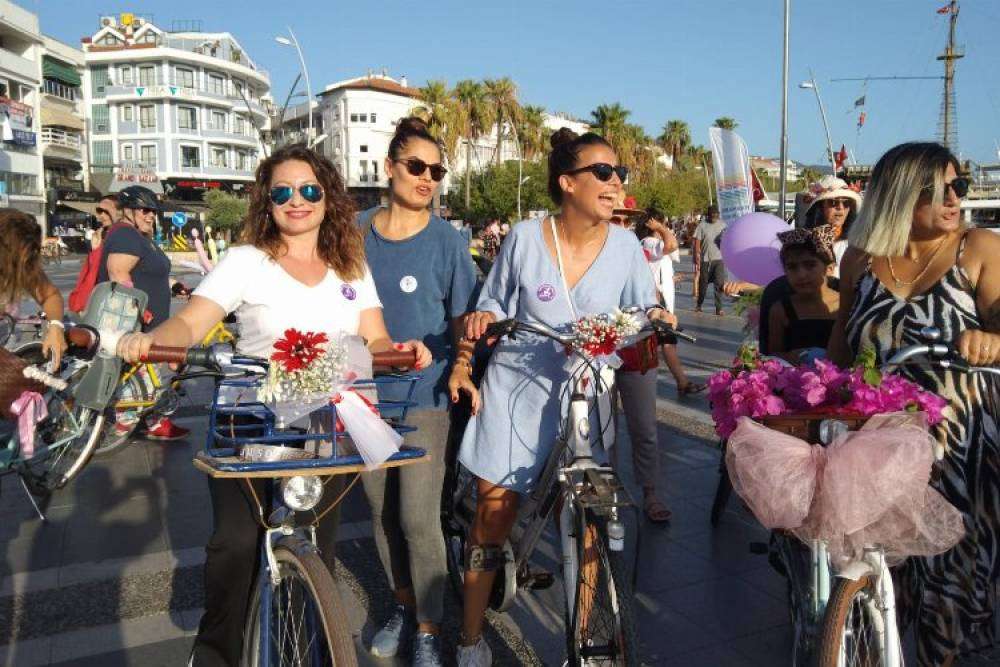 Marmaris sakini kadınların yanı sıra başta Ukraynalılar olmak üzere, kentte yerleşik yaşayan diğer yabancı kadınların da destek verdiği etkinlikte söz alan Yağmur Tezcan; 2013 yılında ilk kez İzmir’de bir grup kadın tarafından düzenlenen Süslü Kadınlar Bisiklet Turu, her yıl yeni şehirlerin katılımı ile büyüyerek uluslararası bir bisikletli kadın hareketine dönüştüğünü kaydetti.
