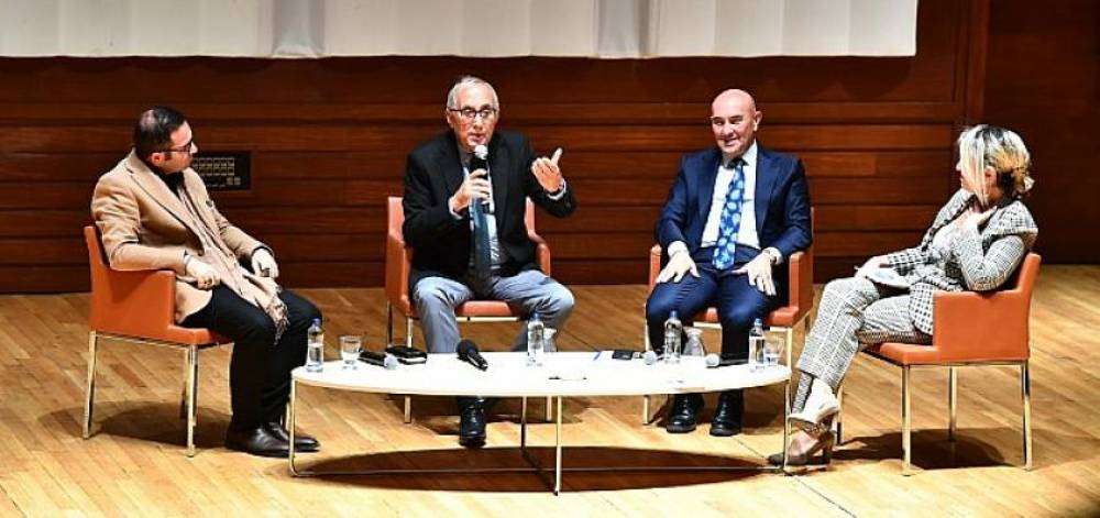 İzmir Büyükşehir Belediye Başkanı Tunç Soyer, Büyükşehir Belediyesi, Girişimci İş Kadınları Federasyonu (GİFED) ve Yaşar Üniversitesi tarafından Ahmed Adnan Saygun Sanat Merkezi’nde (AASSM) düzenlenen Girişimcilik Zirvesi’ne katıldı. Moderatörlüğünü Prof. Dr. Aylin Göztaş’ın üstlendiği “Empatik Konuşmalar” oturumunda Başkan Tunç Soyer, şair ve yazar Ataol Behramoğlu ile arkeolog ve tarihçi Levent Zeybek konuştu. Zirveye GİFED Başkanı Huriye Serter, İzmir İş Kadınları Derneği (İZİKAD) Başkanı Betül Sezgin, kadın derneklerinin yöneticileri ve iş dünyasının temsilcileri katıldı.