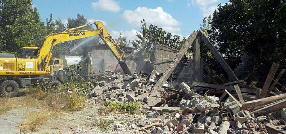 Kent genelinde vatandaşlar için tehlike arz eden, madde bağımlıları tarafından mesken hâline getirilen ve görüntü kirliliğine neden olan terk edilmiş 14 metruk binanın yıkımı Çorlu Belediyesi ekipleri tarafından tamamlandı.