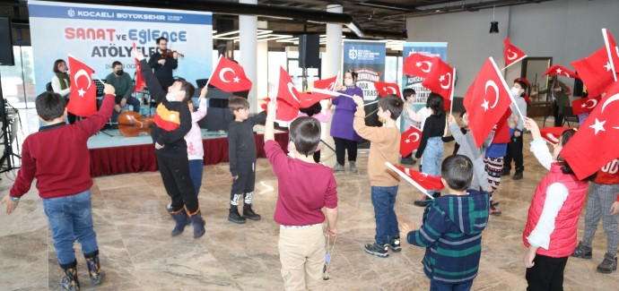 Kocaeli Büyükşehir Belediyesi’nin düzenlediği sanat ve eğlence atölyelerine katılan çocuklar birlik ve beraberliğin en güzel örneğini sergiledi. Kongre Merkezi’nde seslendirilen “Memleketim” şarkısını duyan minikler ellerindeki Türk Bayraklarıyla şarkıya eşlik etti. Vatan sevgileri gözlerinden okunan çocuklar, onları izleyenlerin yüreklerini ve gözlerini doldurdu.