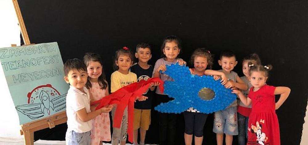 Canik Belediyesi Zambak Sıbyan Okulu öğrencileri, geri dönüşüm malzemelerinden TEKNOFEST Karedeniz’e özel roket çalışması yaptı.